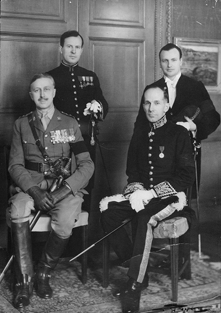 Office of the High Commissioner for Canada in London. Seated left to right: Col. Georges Vanier and Vincent Massey. Standing left to right: Lester B. Pearson and Ross McLean. Lester B. Pearson fonds, Library and Archives Canada/PA-117598.